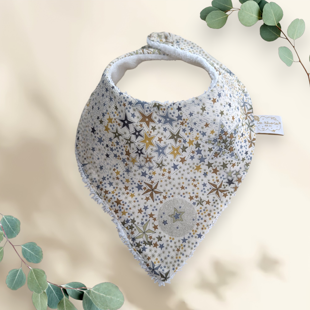 Confectionné avec une éponge douce certifiée Oeko-Tex et un tissu raffiné Liberty of London, ce petit bandana allie élégance et praticité 🌿