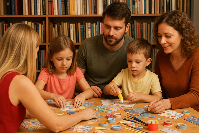 Chaque atelier est réalisé en technique mixed media, mêlant collage, peinture, encre, papier et imagination — pour un résultat aussi créatif que convivial.