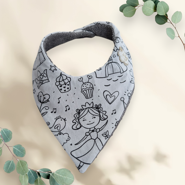 Confectionné avec une éponge douce certifiée Oeko-Tex et un tissu raffiné de coton à motifs, ce petit bandana allie élégance et praticité 🌿