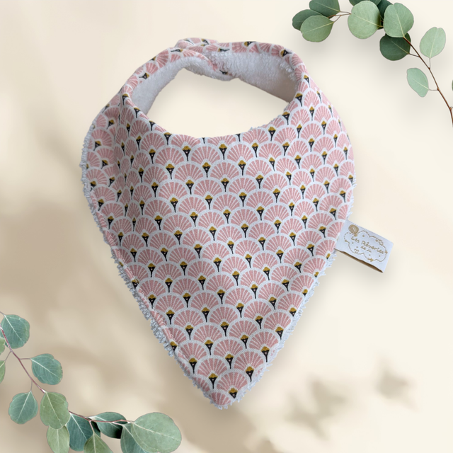 Confectionné avec une éponge douce certifiée Oeko-Tex et un tissu raffiné de coton à motifs, ce petit bandana allie élégance et praticité 🌿