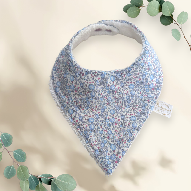 Confectionné avec une éponge douce certifiée Oeko-Tex et un tissu raffiné Liberty of London, ce petit bandana allie élégance et praticité 🌿
