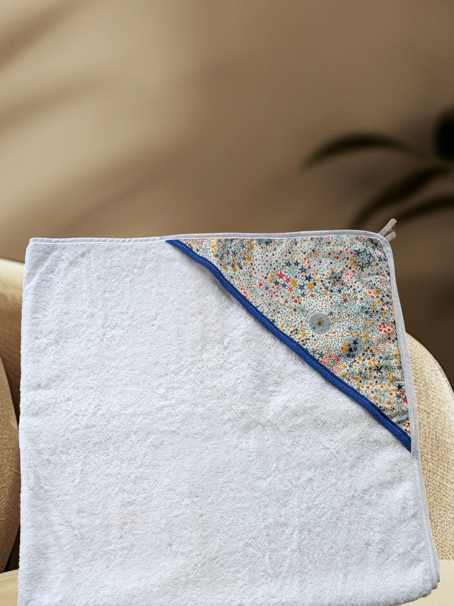 Confectionnée dans une éponge moelleuse 450 g/m² 100% coton et un tissu Liberty of London d’une grande finesse, elle allie élégance et confort.