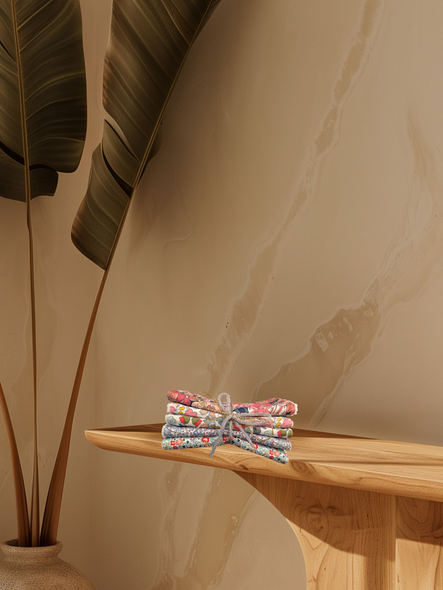7 lingettes en Liberty et Bambou blanc