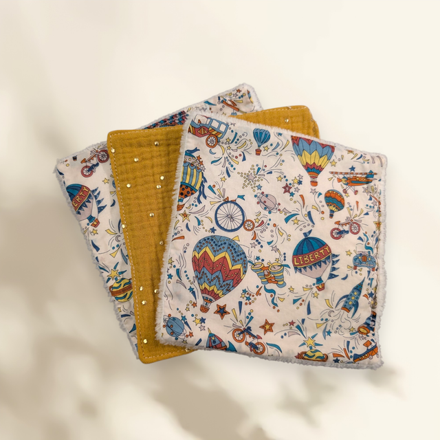 3 lingettes en Liberty / double gaze et Bambou blanc